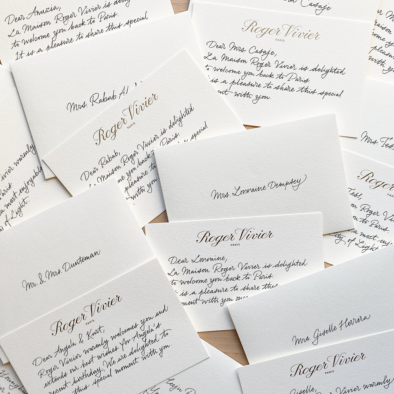 An assorted collection of fine art Calligraphy and event stationery created for numerous luxury and fashion events in Paris and in Barcelona.